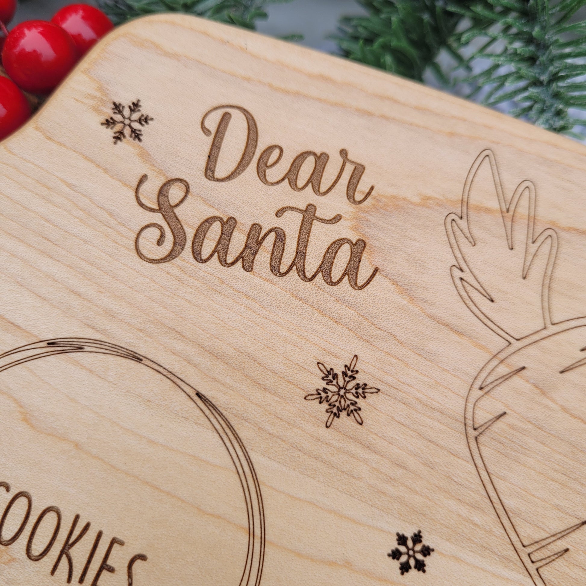 Leave Santa and the reindeers a little treat on their journey! This is a perfect family keepsake to enjoy every Christmas Eve to come. Laser engraved on 3/4" Canadian Maple, measuring approx 6x14" including the handle. Each board is sealed with Odies Oil, leaving a buttery smooth, long lasting finish.