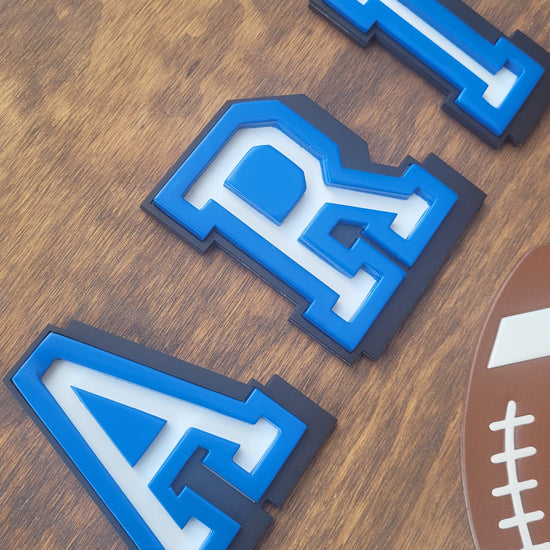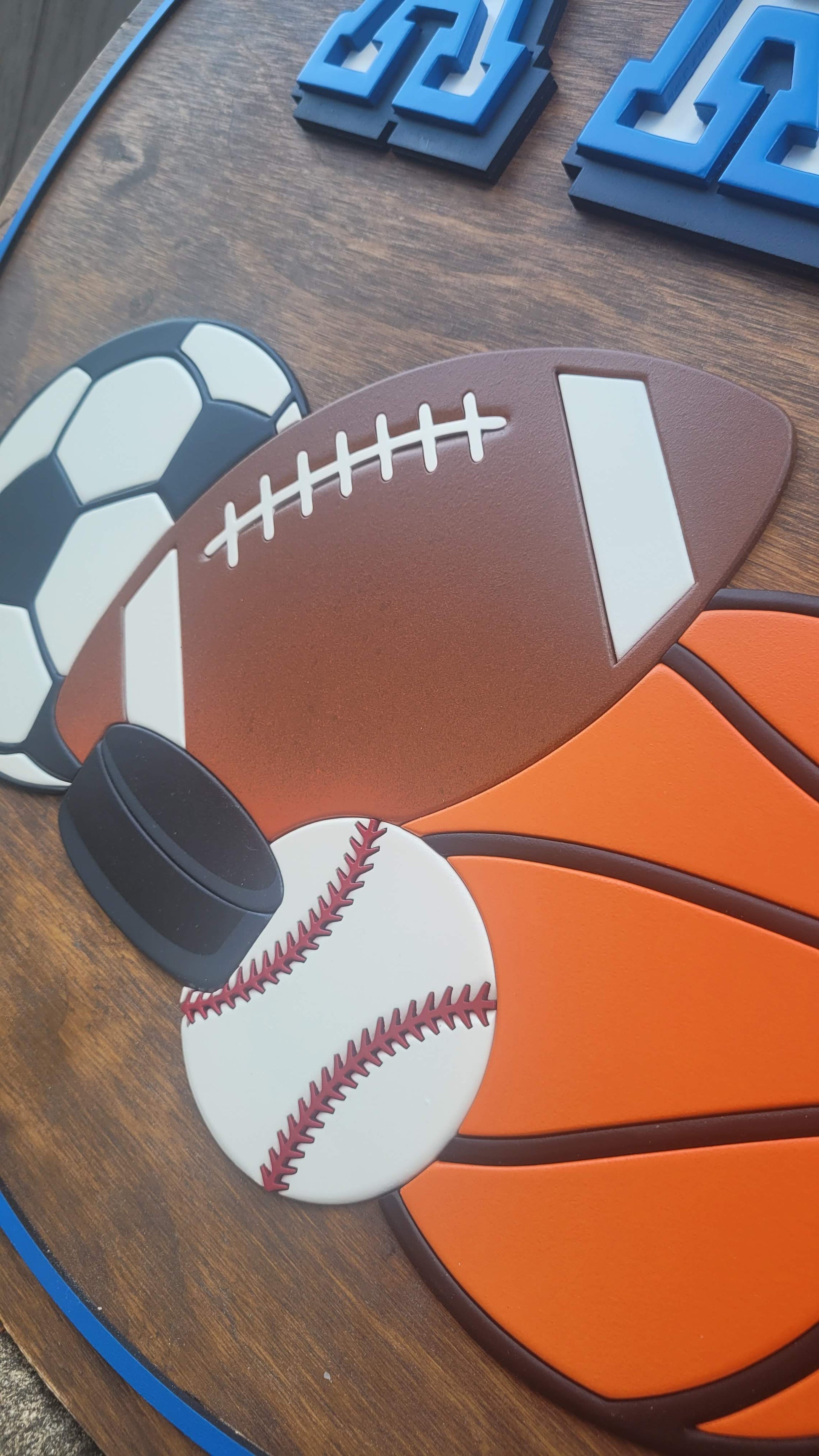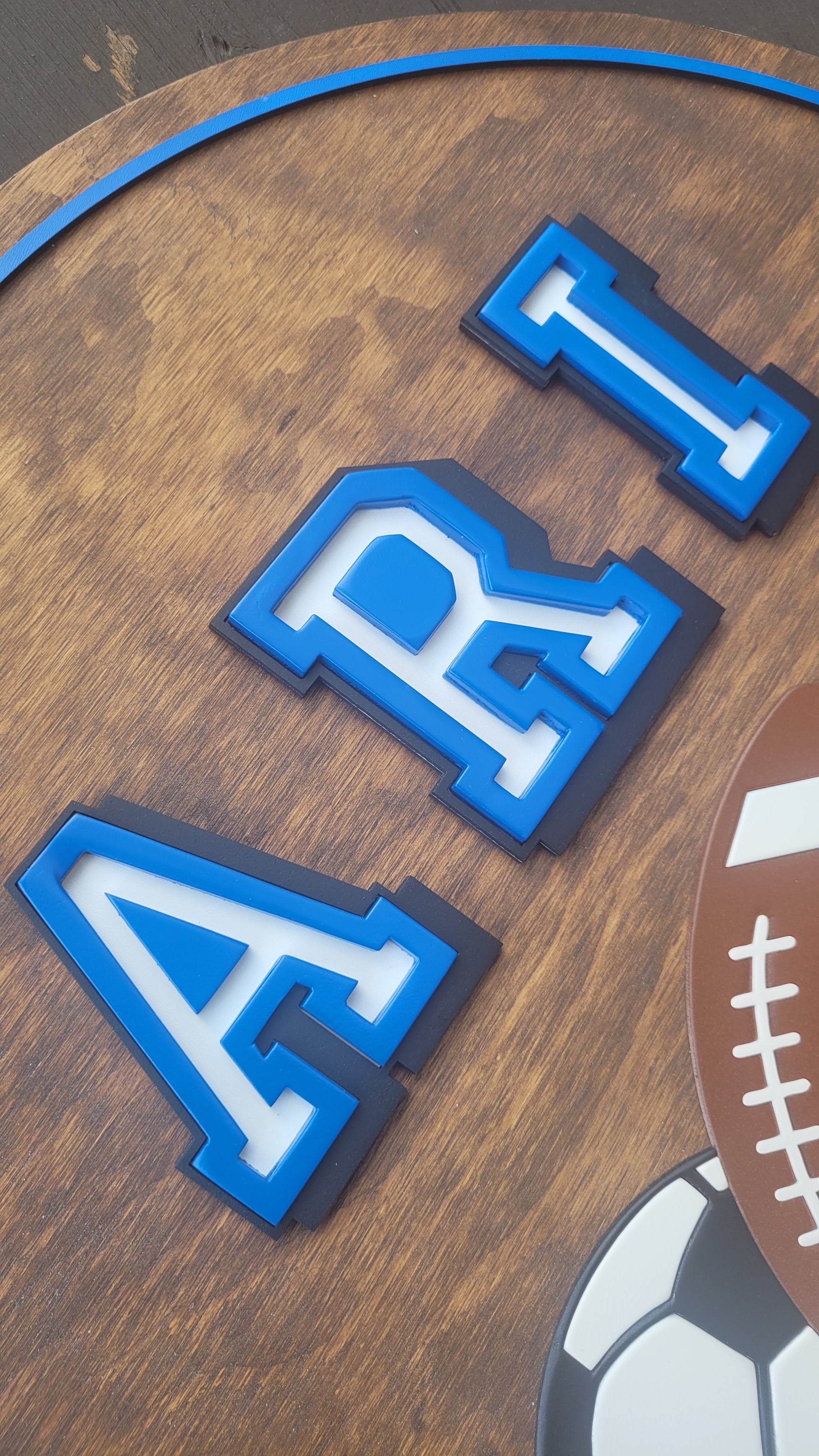 Elevate your little athlete's room with our personalized sports-themed name sign! Choose your favorite font, pick the perfect color, and select a custom backer stain to match their space. Need a different size? Just pop a note in the 'note' section, and we will reach out to discuss the details! 18" round shown. Other sizes/costs available by request!